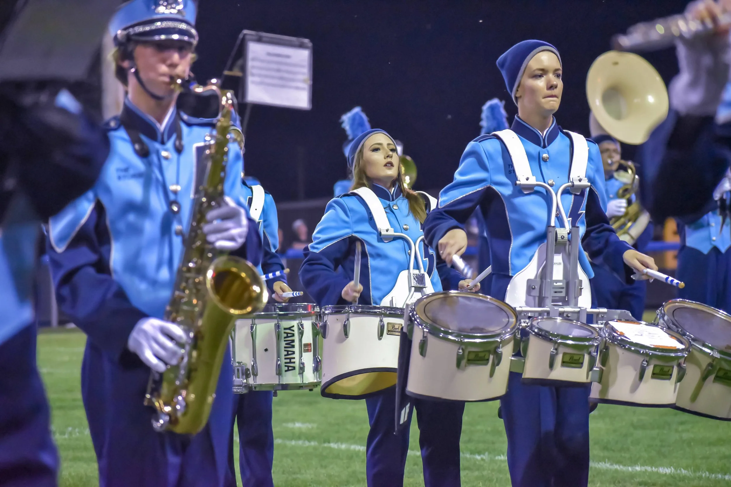 In 7th and 8th grade, students learn intermediate concert band music and perform in four concerts each year. They also have extra performances such as the Homecoming halftime show with the high school marching band.